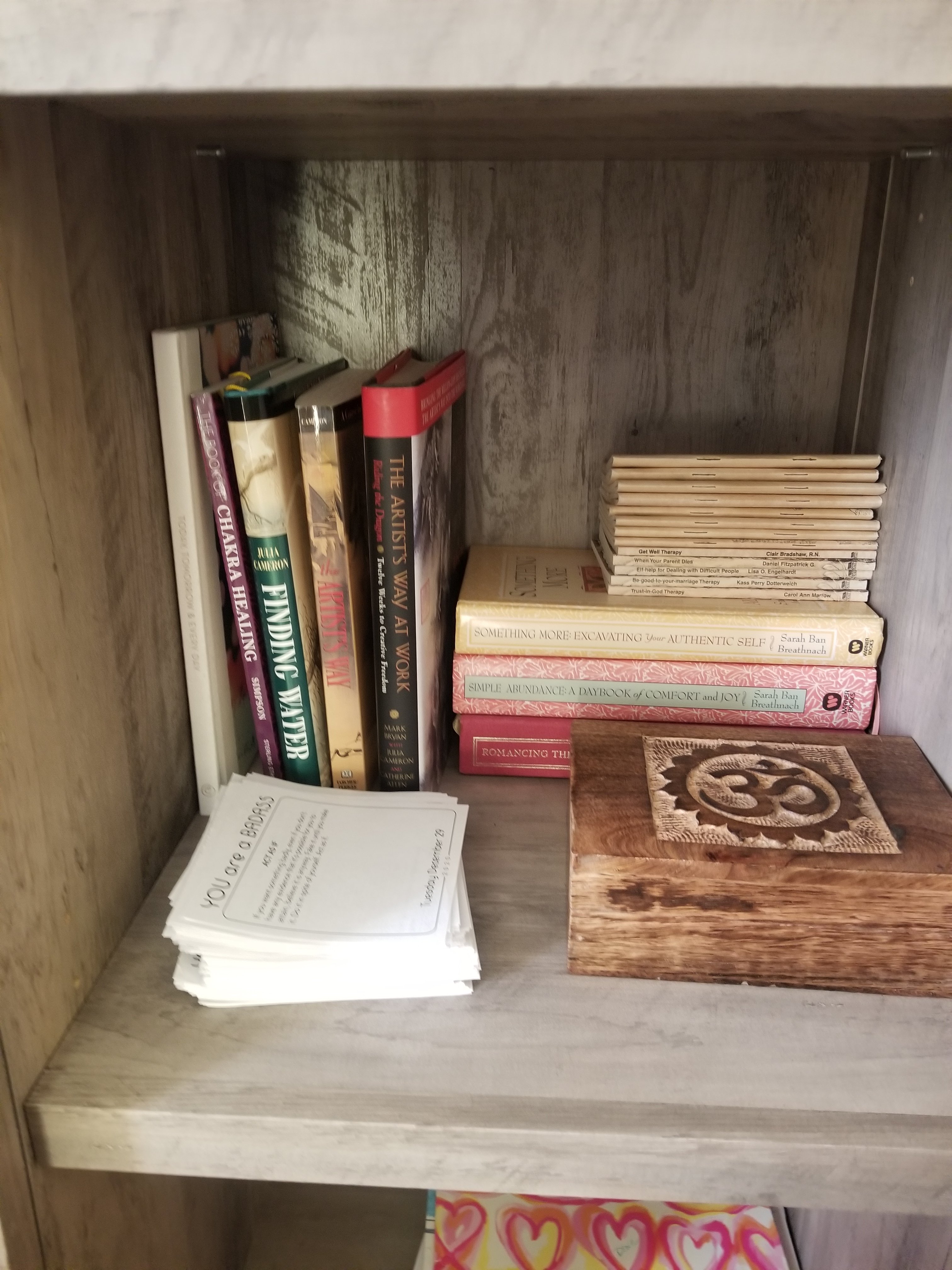 When you let go of stuff you let go of dreams. My dream was to have a whole wall of books in my office. Why? I don’t know. Maybe because that’s what other writers had in their offices.
